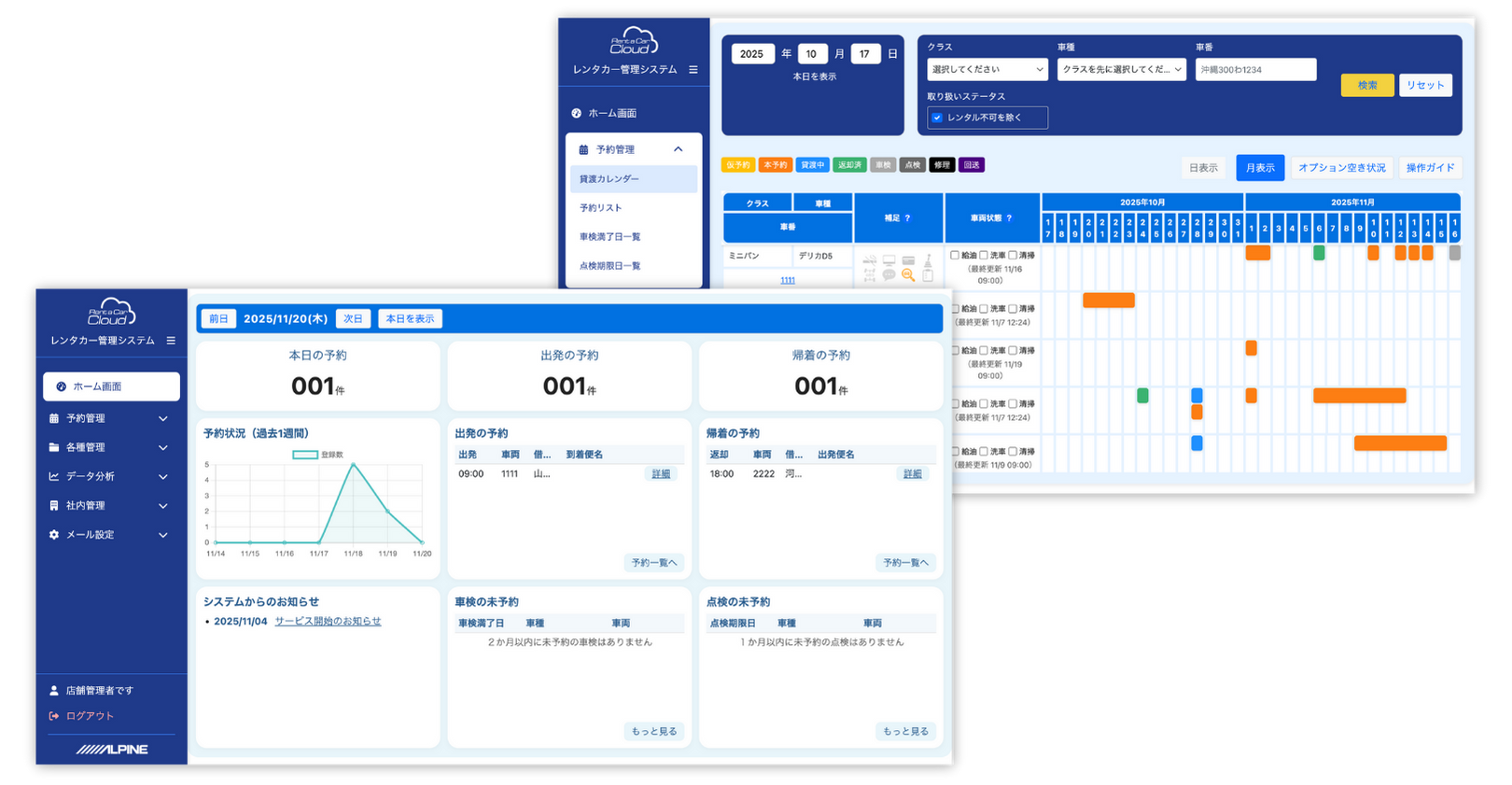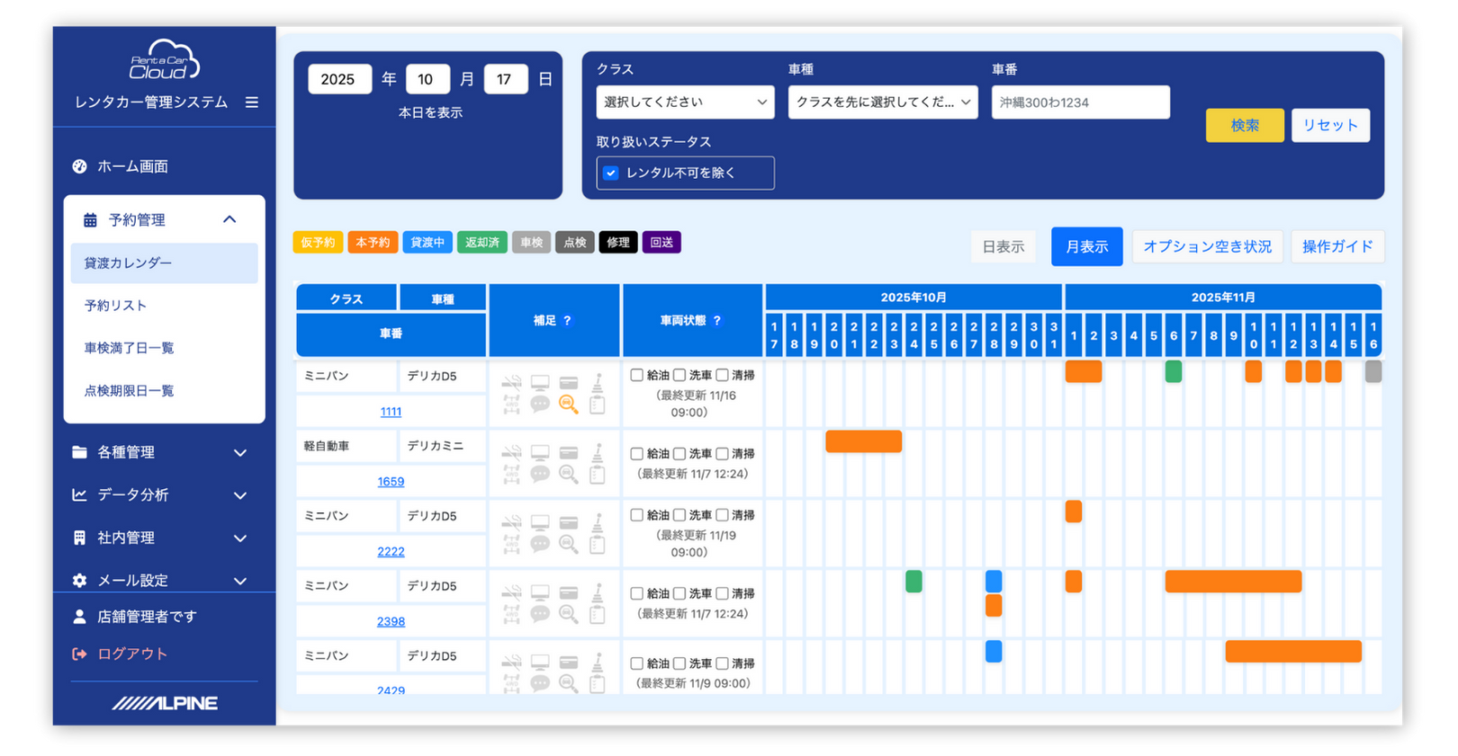 レンタカー業務管理、