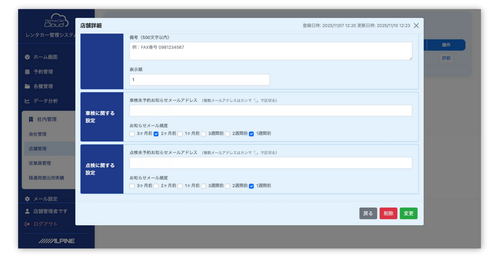 店舗・車両・オプションなどの一元管理で