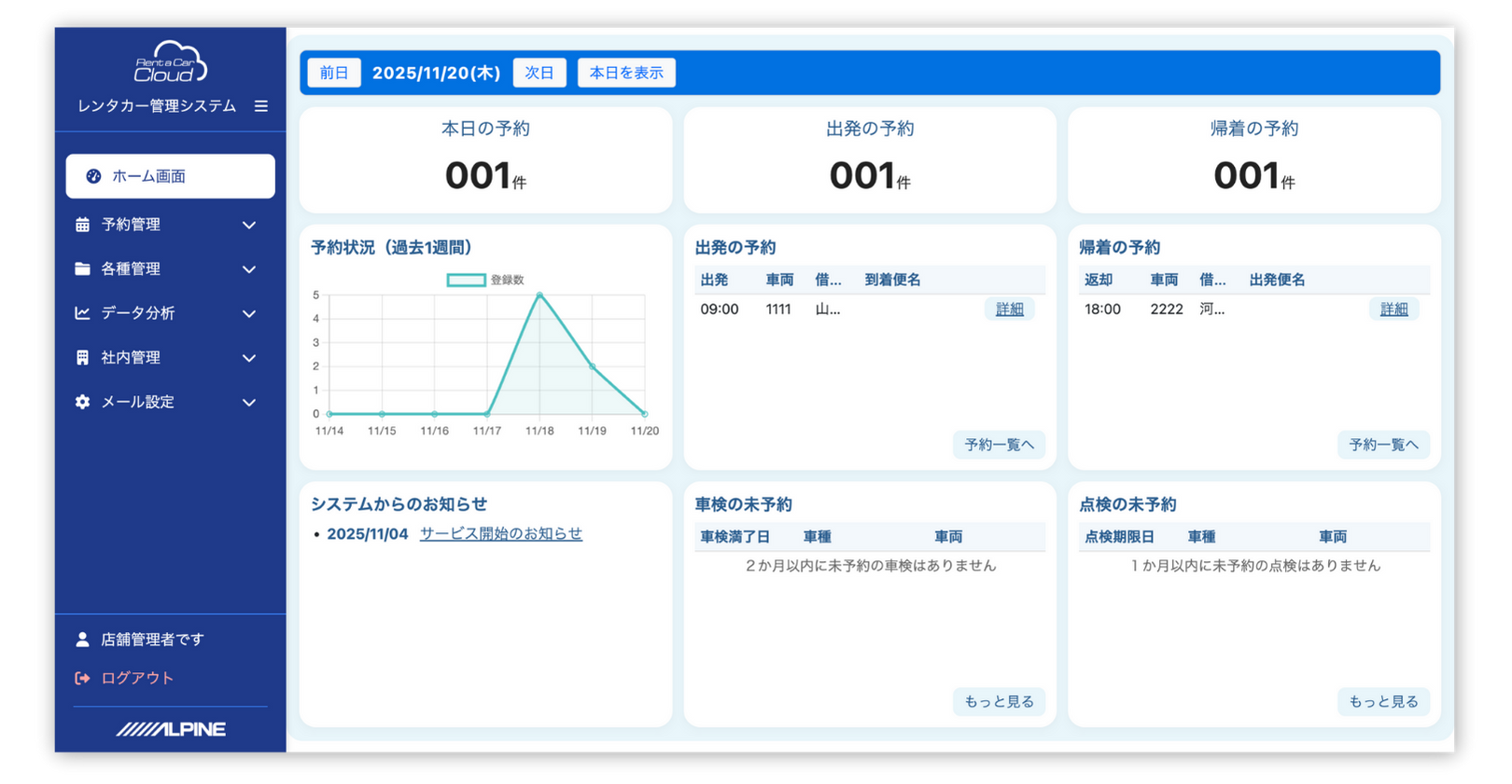レンタカー予約管理の